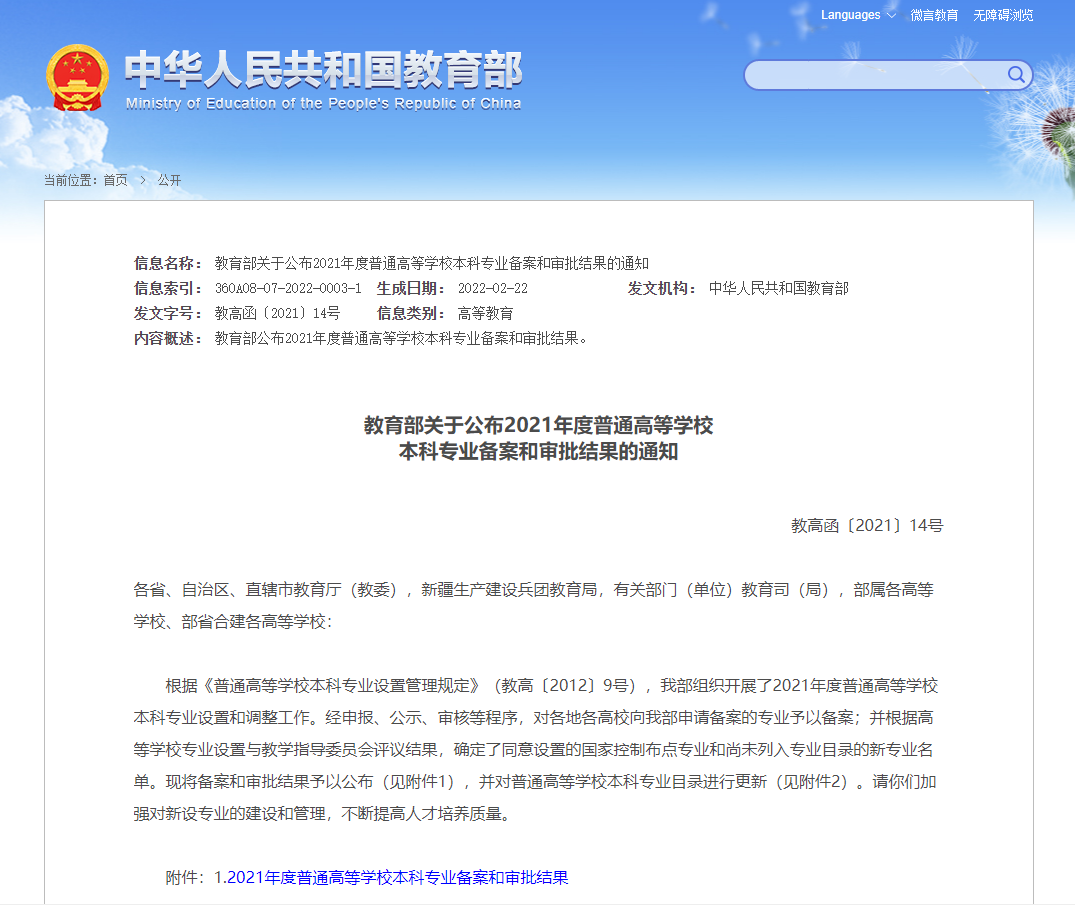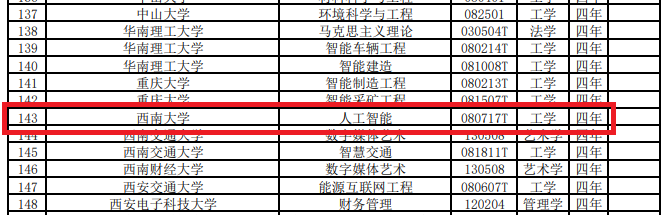 近日,教育部公布了2021年度普通高等学校本科专业备案和审批结果。作为西南大学2021年唯一新申报专业,我院人工智能专业(专业代码080717T)成功获批2021年新增备案本科专业。学院将继续提高学院本科整体教学质量,紧跟人工智能国家战略,积极培养人工智能方向的优质人才。