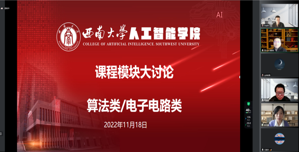 陈枫老师首先介绍了此次课程模块交流沙龙的内容和目的,交流沙龙分为算法类、电子电路类两个课程模块,将打通智能科学与技术、人工智能两个专业,使相关联课程模块化,有利于老师们更好交流,便于后续培养方案和大纲修订。