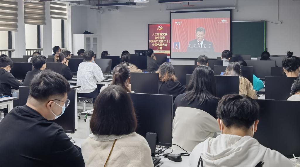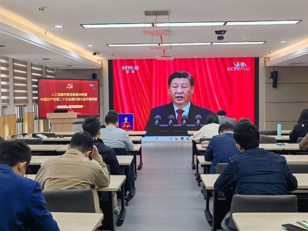 报告在学院师生中引起热烈反响。学院党委书记夏俊认为,报告全面总结过去五年工作及新时代十年的伟大变革、令人备受鼓舞,从十五个方面科学谋划未来五年乃至更长时期党和国家事业发展、让人坚定信心,学习宣传贯彻党的二十大精神是当前和今后一个时期的首要政治任务,学院党委要着力推动大会精神在师生中入脑入心,落实立德树人根本任务,主动对接人工智能国家重大战略和关键问题布局,抓住发展机遇。学院院长、党委副书记段书凯表示,报告明确宣示了党在新征程上举什么旗、走什么路、以什么样的精神状态、朝着什么样的目标继续前进,教育、科技、人才是全面建设社会主义现代化国家的基础性、战略性支撑,我们要坚持科技是第一生产力、人才是第一资源、创新是第一动力,积极作为、敢于担当、开拓创新。学院党委副书记张维薇表示,报告高屋建瓴、主题宏大、意义深远,作为学生工作者,首先要在深入学习领会党的二十大精神上下功夫,按照原文学、结合历史学、对照现实学,同时要在引导青年大学生学习、领会、贯彻党的二十大精神上下功夫,引导广大青年学生永远听党话、跟党走。