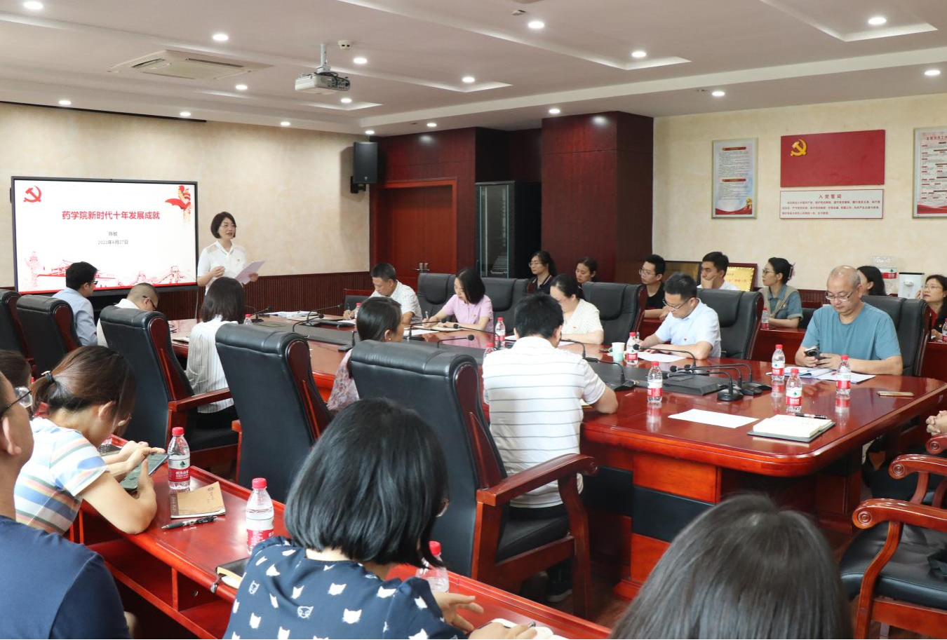 大家参观了药学院党建文化墙、党员活动室等场所,观摩了药学院教工第一支部“以学正风,强师德正师风”主题党日活动,聆听了药学院党委书记陈敏所作的“药学院新时代十年发展成就”报告,围绕支部建设经验开展学习交流。观摩过程中,大家认真看、仔细听,共同参与知识竞答等学习交流环节,对标样板支部找差距,积极学习药学院教工第一党支部在创新开展组织生活、打造党建品牌活动、立足学科专业推动党建与事业发展深度融合等方面的经验做法。