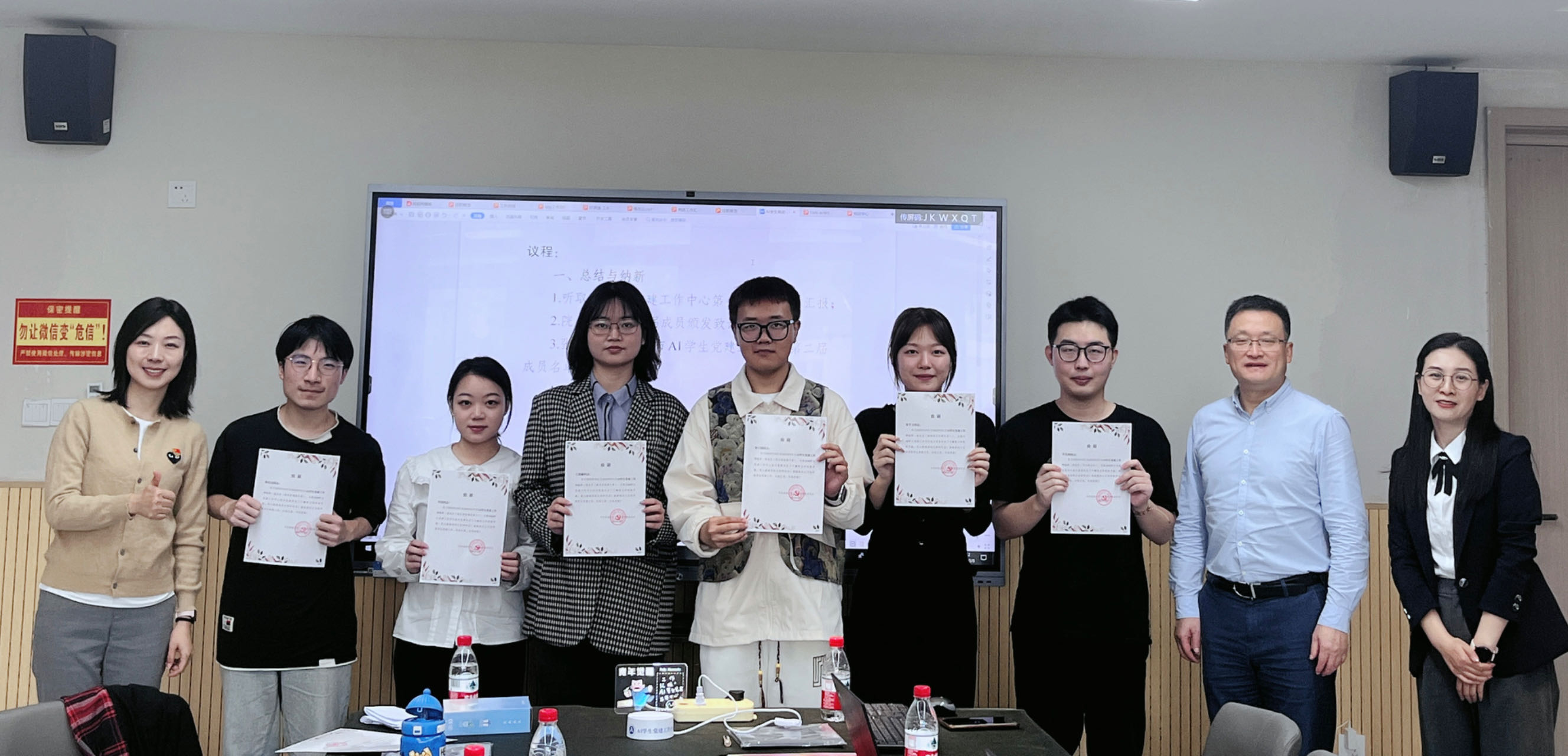 首届成员在中心成立后的建设起步中贡献了关键力量。夏俊、张维薇为第一届成员颁发了致谢书,代表学院党委感谢大家所付出的努力。