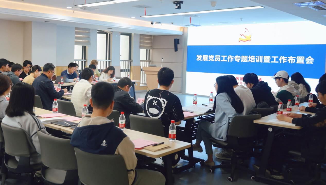 根据党务工作队伍培训安排,4月11日上午,学院党委在801会议室召开发展党员工作专题培训暨工作布置会。学院党委书记夏俊,党委副书记、纪委书记张维薇出席会议。会议由学院党委组织员严世趁主持,学生党支部全体支部书记、支部委员,教师党支部支委代表,全体辅导员,团委学生会相关骨干、AI学生党建工作中心成员、团支部书记代表参加。