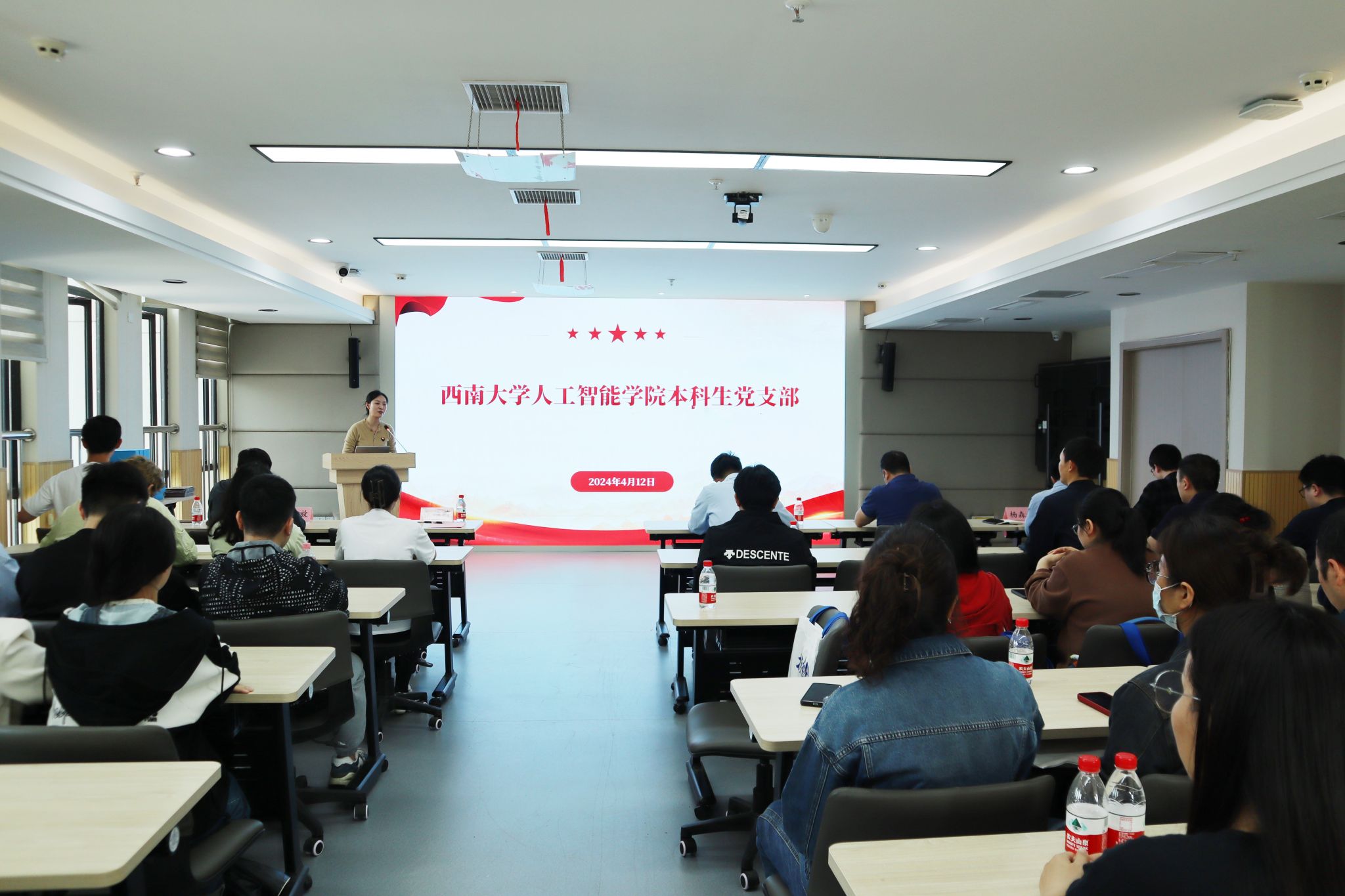 由本科生第二党支部牵头,学院两个本科生支部与某企业智慧电子系统党支部联合开展主题党日活动,共同了解西大校史、探索新兴技术、汲取奋进精神。企业相关负责人分享了贯彻落实党的路线方针政策、通过技术创新和产业升级推动企业发展的实践经历,大家围绕学习工作实际,就如何更好成长成才进行了深入交流。活动还特别邀请了马克思主义学院龚锦涛老师讲解“新质生产力”,深化两会精神学习理解。
