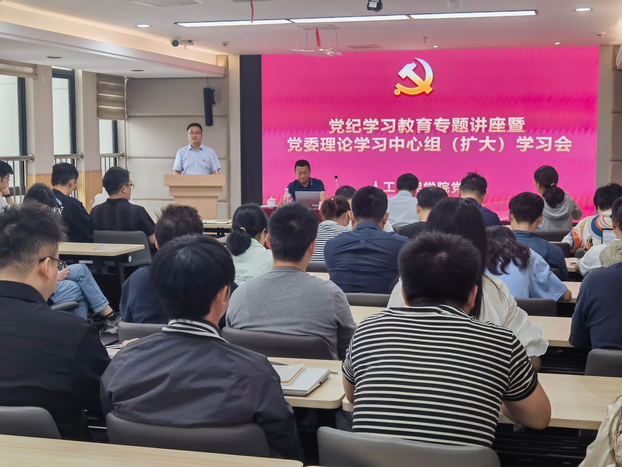 5月10日下午,根据学院党纪学习教育工作安排,学院党委在801会议室开展党委理论学习中心组(扩大)学习会。学院党委书记夏俊主持会议,学院党委理论学习中心组成员、全体教师党员、学生党员代表参加学习。