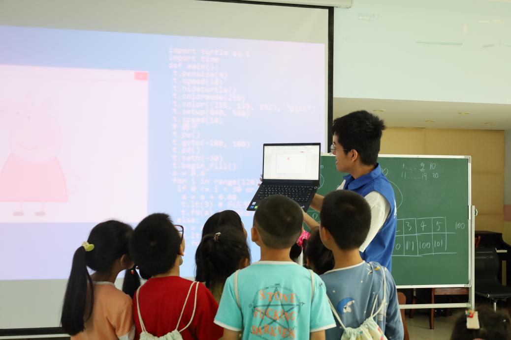 7月3日上午9时,伴着清晨的第一缕阳光,PA视讯集团实践团公益课堂组再次来到集真村微型少年宫开展少儿编程课堂。实验团成员吕硕给小朋友们讲述了什么是编程并展示了有趣的编程作品,使他们初步了解代码如何实现,激发了小朋友们对编程的兴趣,提升了小朋友们的逻辑思维。