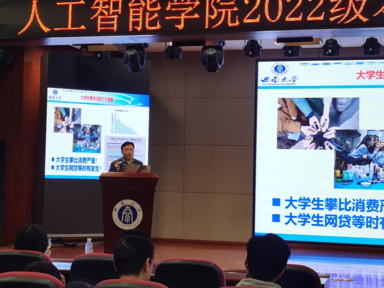 首先,徐伟华教授分享了后疫情时代大学生的AI学习规划,徐教授从自身求学、工作经验出发,告诫大学生应当警惕网络诱惑、懒惰陷阱以及不良的消费观念,客观分析了当下就业形势、疫情对大学生的影响,引导大学生在复杂多变的社会中更应该明确人生三问,形成正确三观,指导大学生做好学业规划和人生规划,明确学什么、知道怎么学以及何时学。为22级AI学子在新的AI时代下的学习生活提出恳切倡导和真挚建议,号召同学们不断改变革新,勇攀高峰!