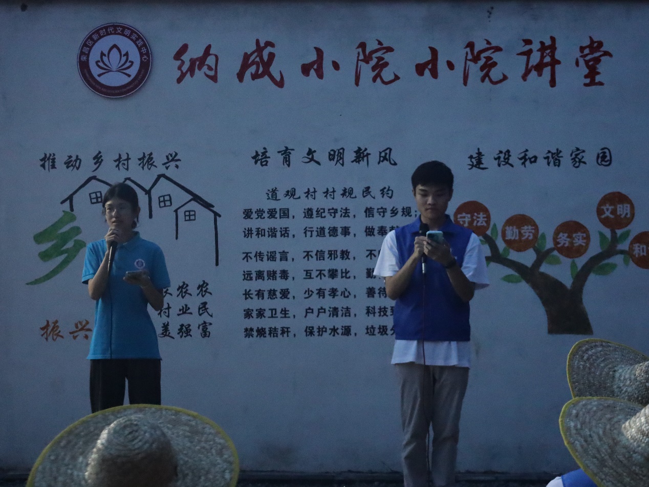 晚上19时,实践团成员在纳成小院举办了套圈活动和红色主题歌会,以歌曲的形式挖掘深藏的红色记忆,村民们聚集在此,现场氛围欢乐温馨。紧接着,实践团成员号召村民共唱红歌,围观村民们从激昂的歌声中表达出对先烈的敬意,实践团成员们也将饱满的热情投身于社会实践之中。至此,第二天的三下乡实践活动到此结束。