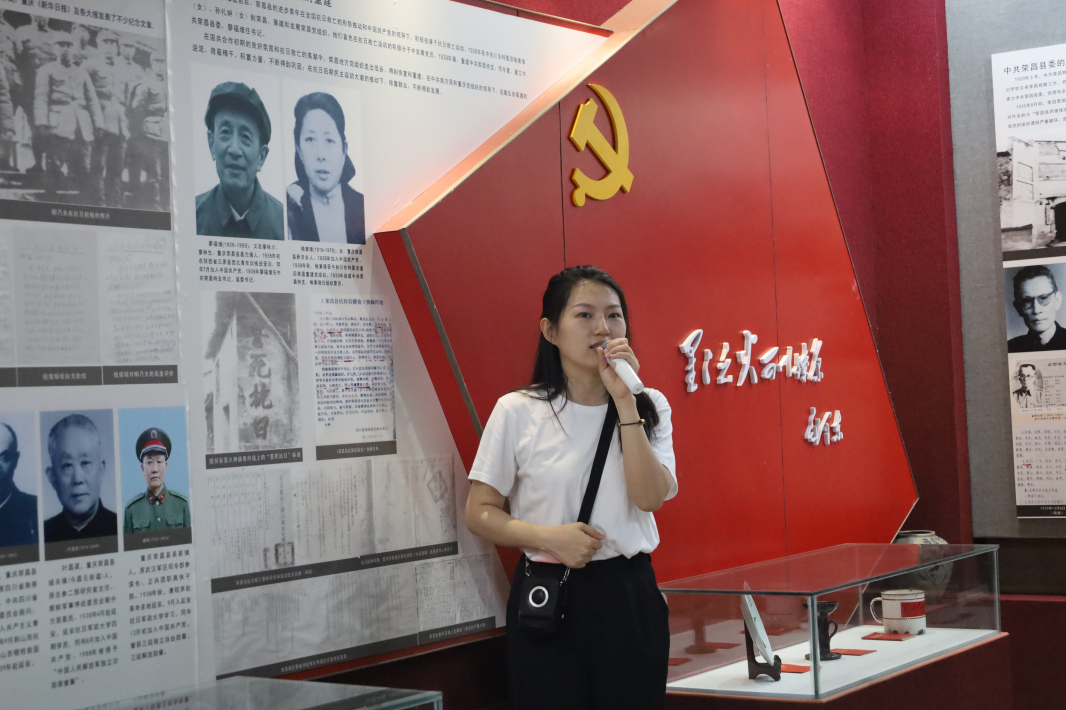 6月30日上午9时30分,PA视讯集团“三下乡”社会实践服务团在辅导员孙一博的带领下到达荣昌区直升镇的“红色家园”进行参观。当地讲解员张娟带领实践团全体深入了解红色故事中的英雄事迹,在参观过程中感悟先烈们奋斗的艰辛历程。在红色影院观看了老地下党员张佐成拍摄的红色历史影片,同学们更加坚定了对中国共产党和社会主义事业的认同感和自豪感。