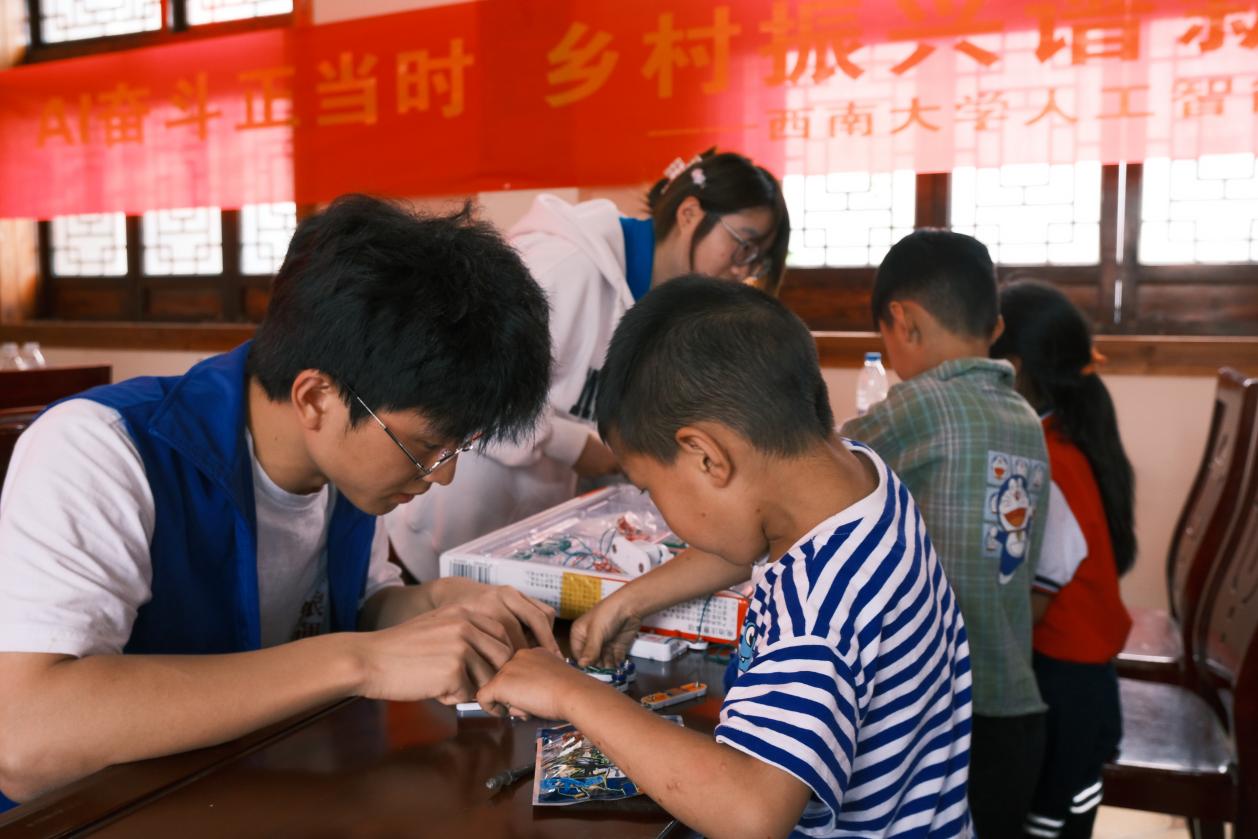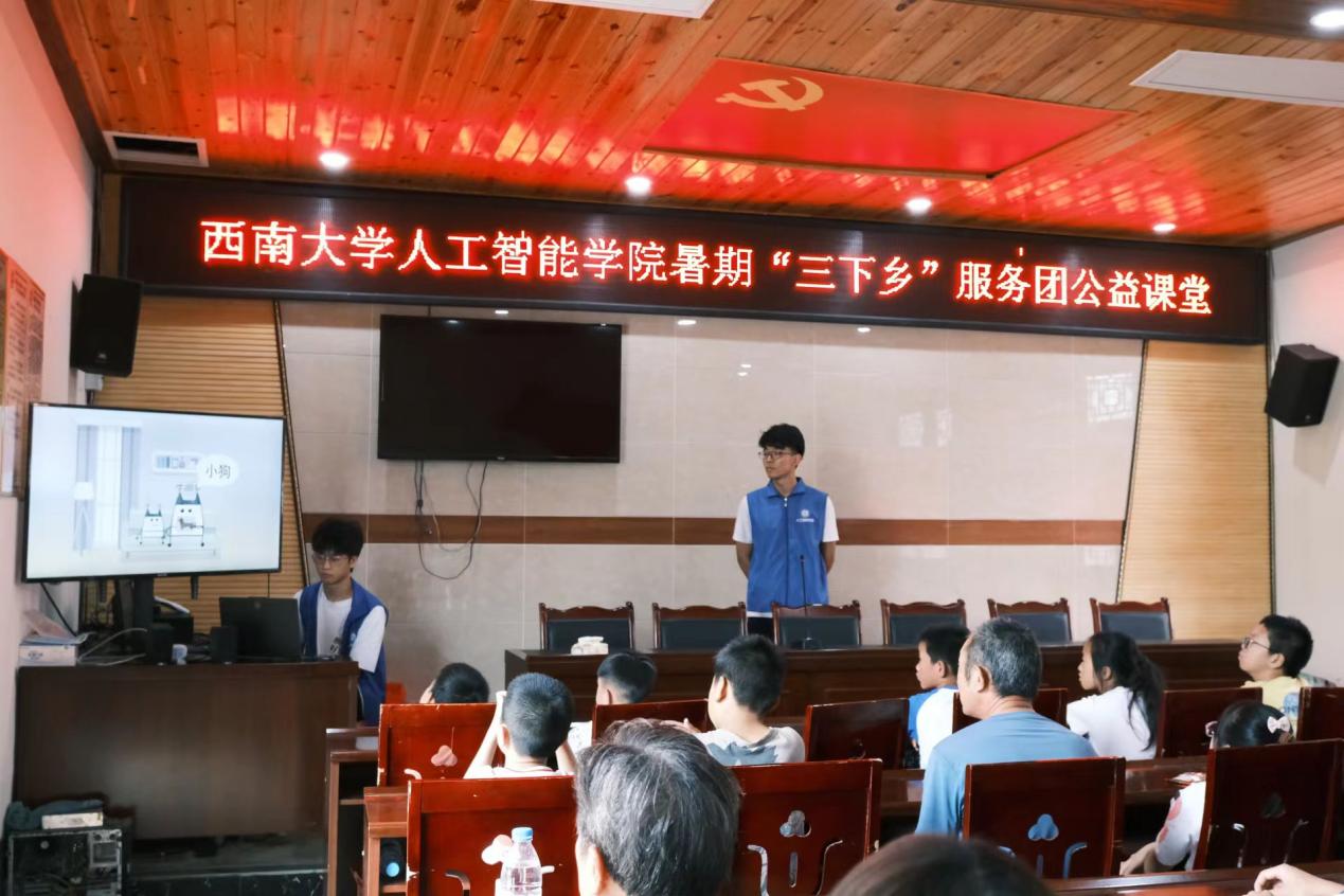 下午14时20分,实践团成员来到荣昌区直升镇道观村,开展“关爱留守儿童”公益课堂活动,实践团成员黄梓铭为留守儿童们开展了生动有趣的AI入门教学,极大的激发了小朋友们的好奇心,也为他们科普了许多AI领域的相关知识。