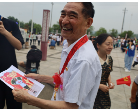 (拿着照片的一名老党员)