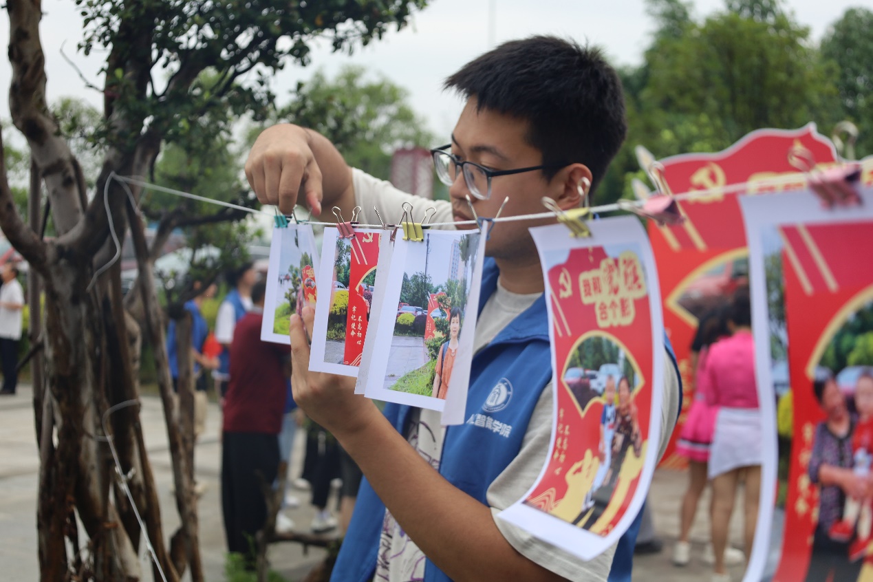 实践团众人配合默契,各自分工。行动组在收集照片的同时参与庆祝活动小党旗分发工作,并与活动现场的村民深入交流,了解到他们平时的日常生活与当地部分政策的落实情况,实践团成员刘世会为他们耐心解答疑问,帮助保存电子版相片。