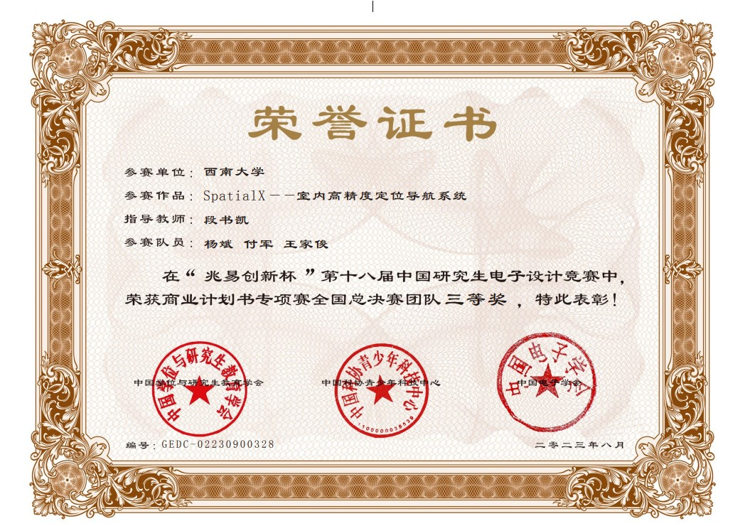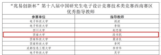 8月10日至8月13日,“兆易创新杯”第十八届中国研究生电子设计大赛总决赛在广东省东莞市隆重举行。由PA视讯集团段书凯教授指导的队伍参加了商业计划书赛道和技术赛道,分别荣获全国三等奖佳绩。同时,指导教师段书凯教授获得西南赛区优秀指导教师称号。
