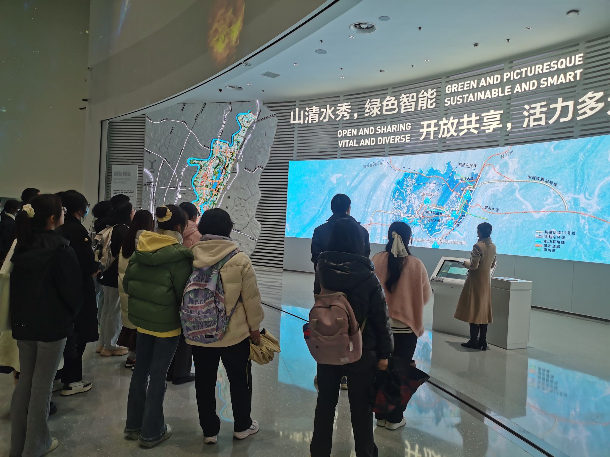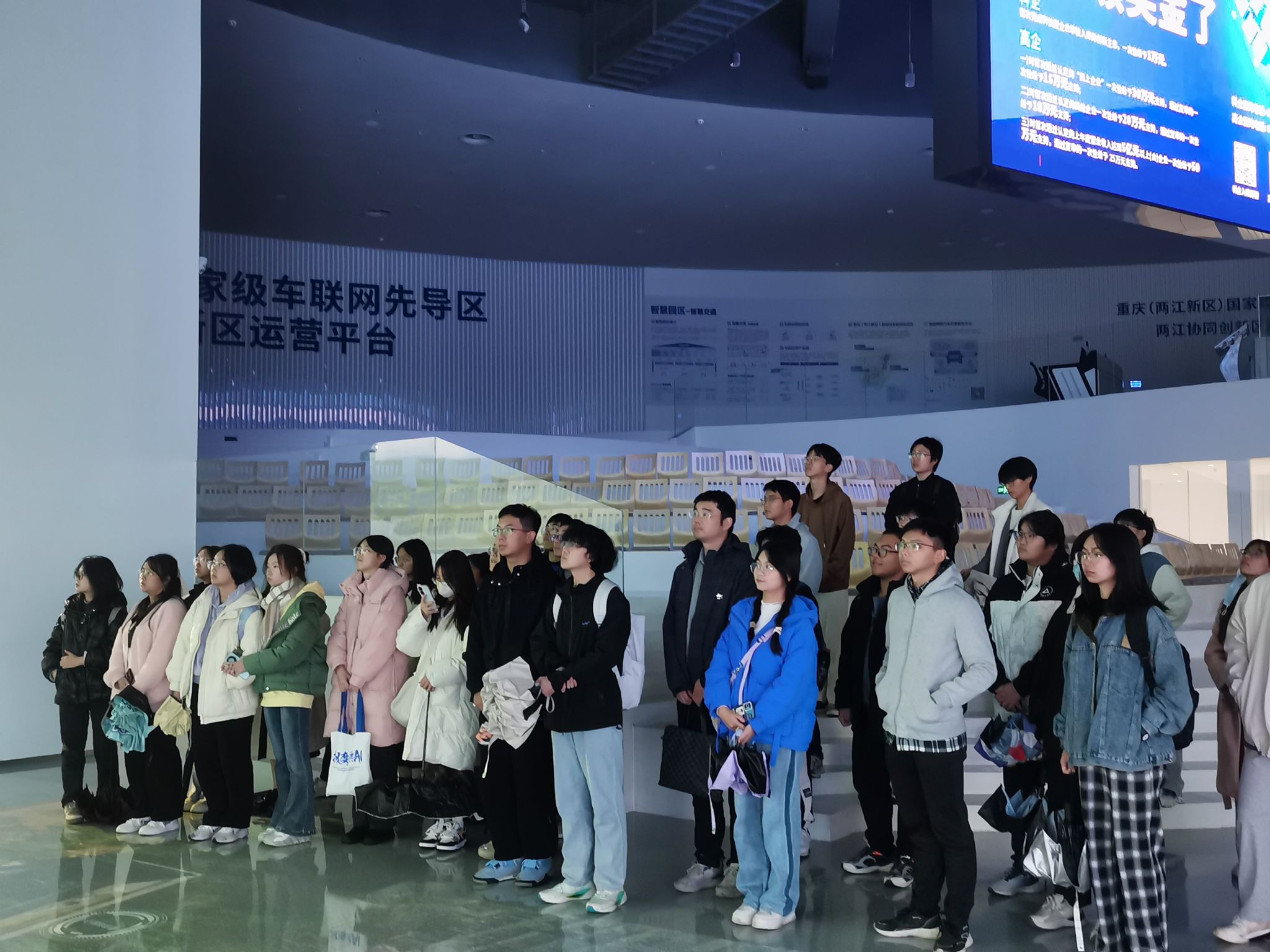 随后,同学们前往明月湖协同创新馆进行参观,身临其境感受前沿科技概念与产品。在场馆工作人员的讲解下,同学们了解到人工智能在web3.0产业集聚与创新、泛智能产业、卫星互联网产业、金融科技产业等存在广泛应用前景,认识到数字科技将引领政务、文旅、智能网联、城市治理、科学研究等多方面深度融合发展。