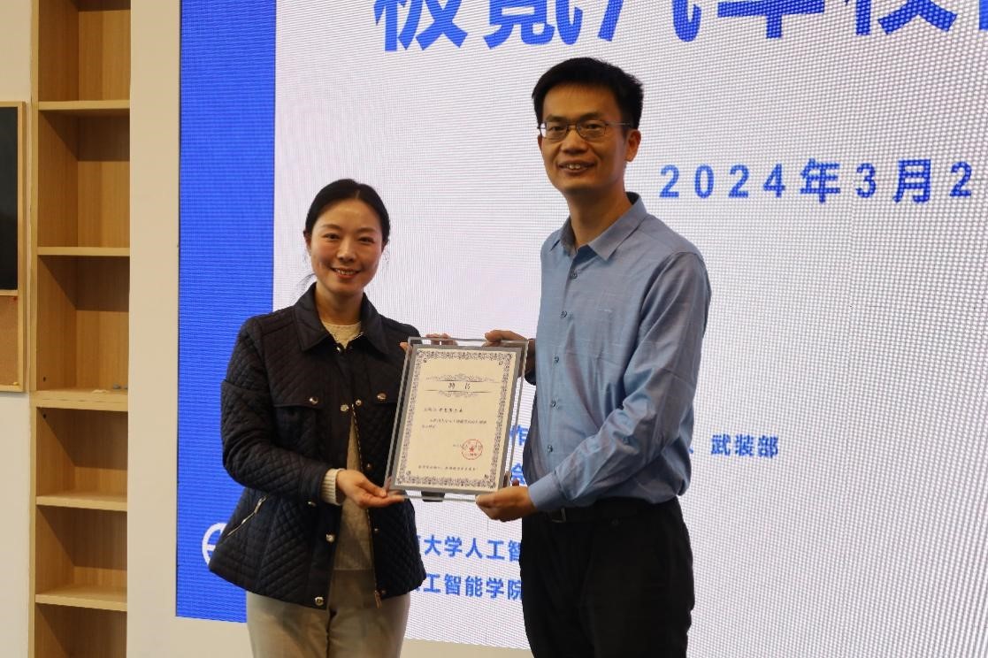 在翁志伟工程师为同学们进行技术分享之后,张维薇副书记为翁志伟老师颁发PA视讯集团校外创新创业导师聘书,希望极氪汽车能与学院有更长远的合作。