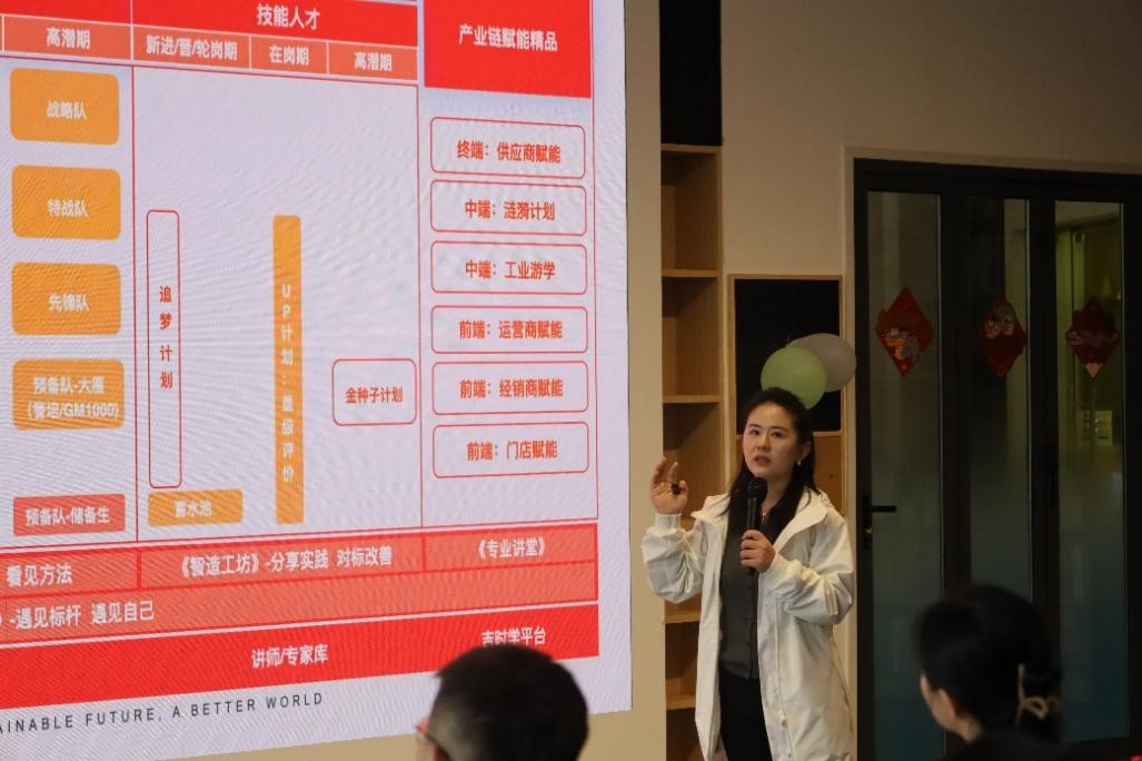 极氪汽车校园板块负责人陈涵向同学们介绍极氪校园岗位,希望同学们积极参加极氪的实习和应届生招聘,帮助同学们更好地了解极氪汽车的招聘理念和人才成长路径。