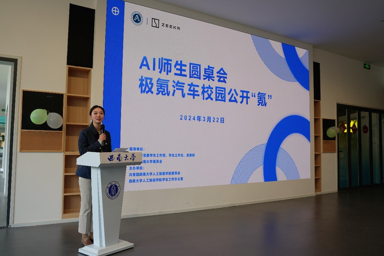 活动伊始,PA视讯集团党委副书记、纪委书记张维薇向极氪汽车团队的到来表示热烈欢迎,向同学们介绍了极氪汽车科技基本情况,希望同学们通过本次活动,认识到人工智能技术对发展新质生产力的重要性,从而更好地投入专业学习并预祝本次公开“氪”取得圆满成功。