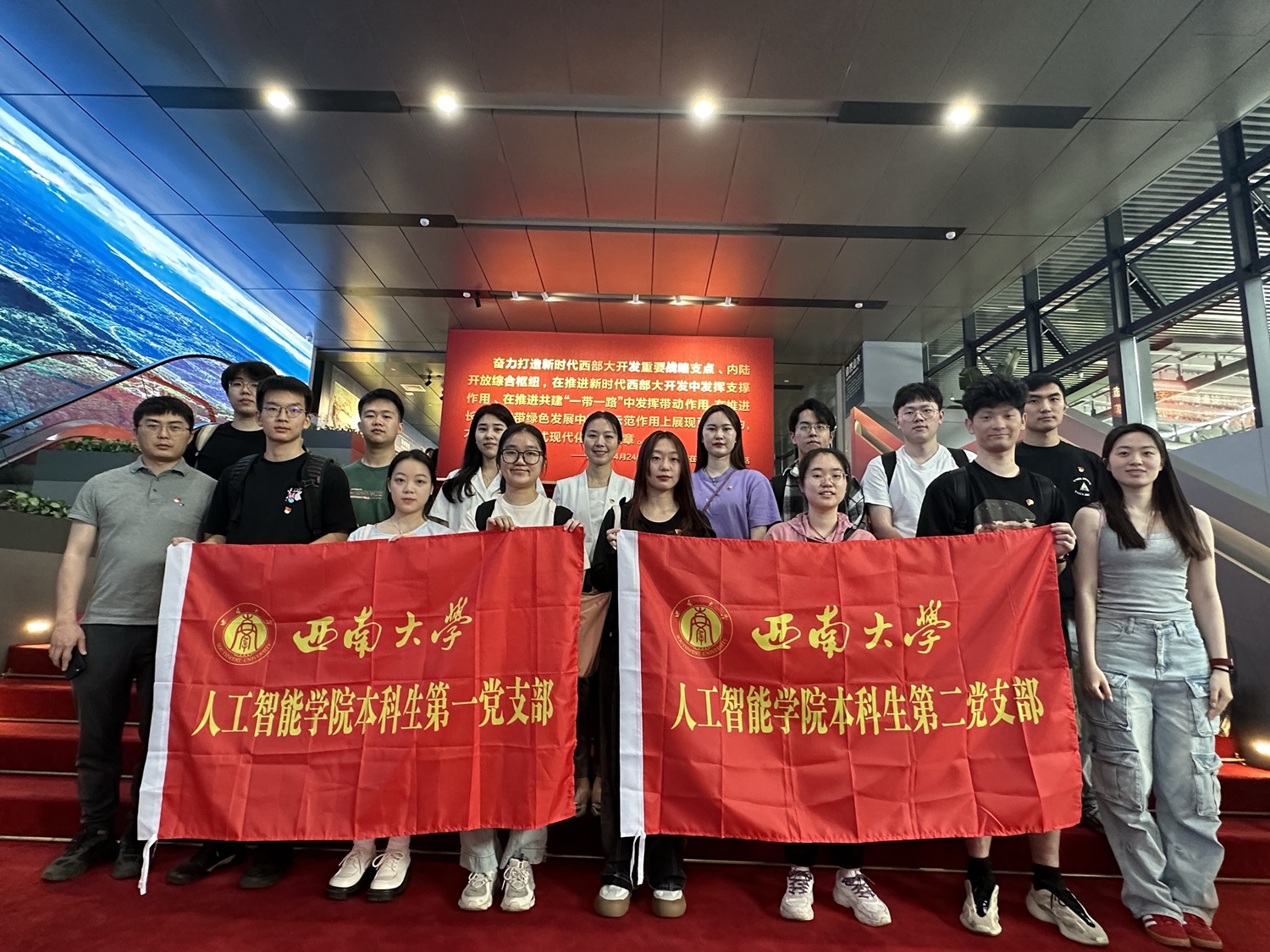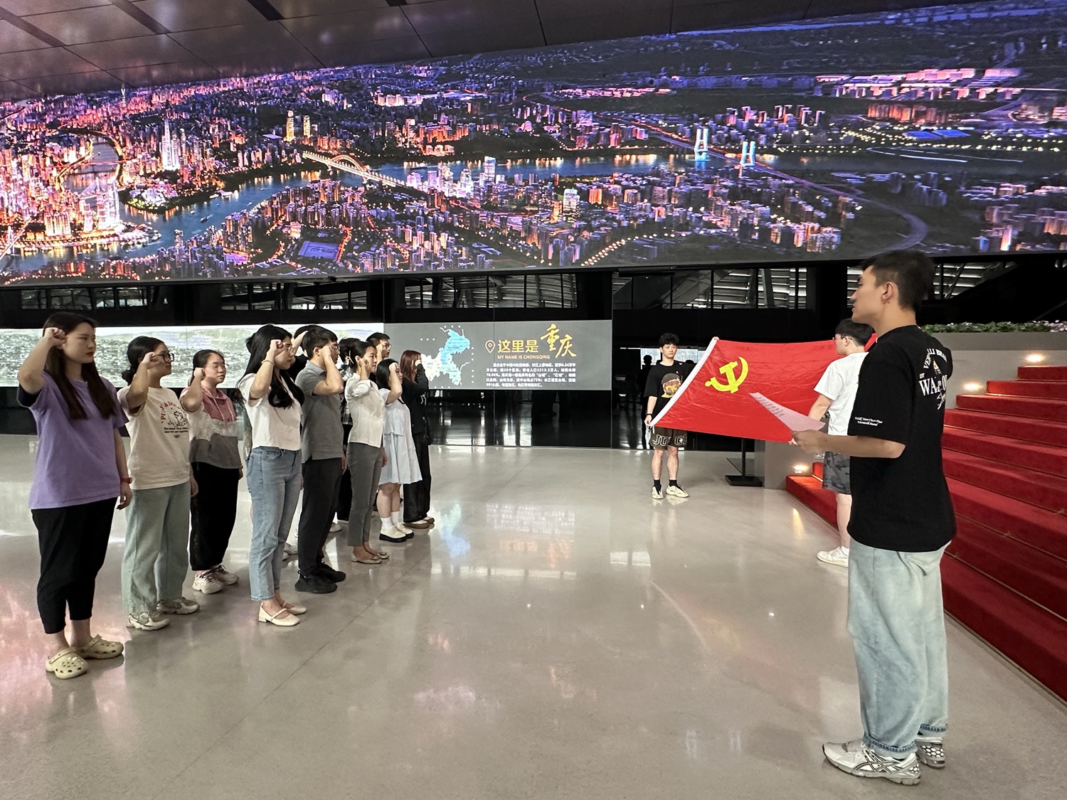 在重庆规划展览馆讲解员的介绍下,党员同志们感受到重庆山水“行千里,致广大”的磅礴大气格局,一方山水养一方人,也正是这样的山水孕育了耿直豪爽、勤劳智慧的重庆劳动人民。在新时代,重庆人民凭借重庆优越的地理优势,积极推动成渝地区双城经济圈建设,做好西部大开发的重要战略支点、“一带一路”和长江经济带的联络点,扎实推进“两地”、“两高”目标,切实发挥新时代西部大开发中的支撑作用、共建“一带一路”中的带动作用和长江经济带绿色发展示范作用。重庆的发展始终以科技创新为重要支撑点,积极构建“416”科技创新布局,聚力打造数智科技、生命健康、新材料和绿色低碳4大科创高地,全面推进人工智能、大数据等16个战略领域协调全面发展。作为人工智能相关专业的党员,大家都真切感受到时代的责任与担当都落于肩上,坚定了在未来的学习和工作中为党为国分忧解难的决心。