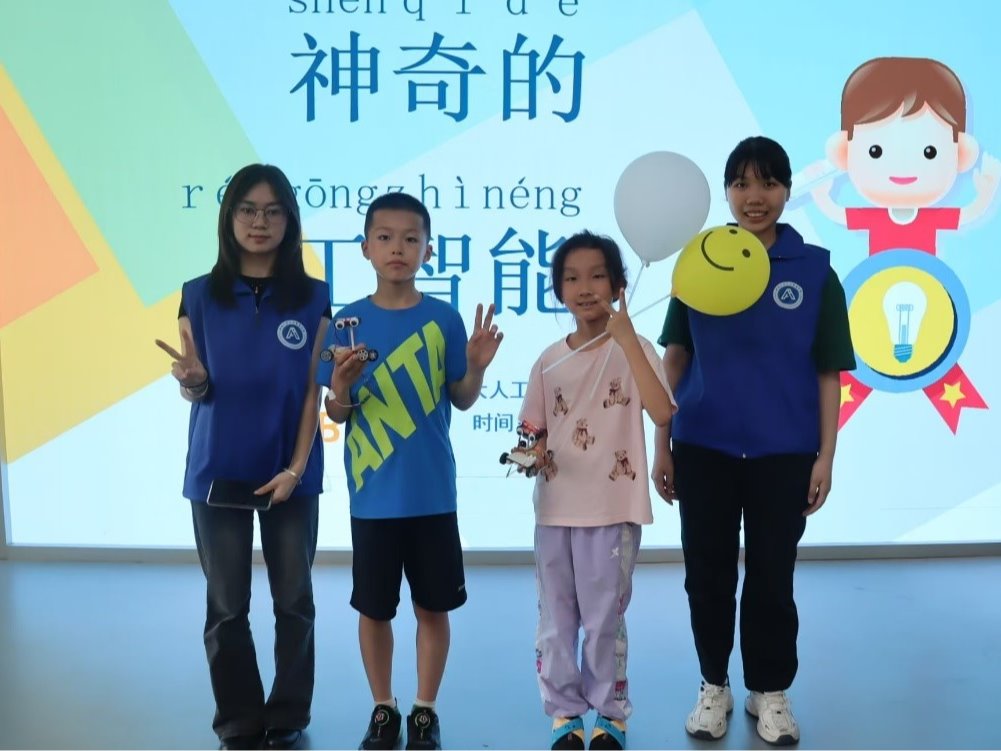 在智感交融的AI体验环节,通过AI绘图作诗、智能识别等形式,展示了人工智能大模型的交互应用。活动在声控小车的制作中掀起高潮,在志愿者的帮助下,当看到亲手组装的小车随着指令下达成功跑动时,欣喜之情溢于言表。小朋友们纷纷竖起大拇指,“AI又聪明又博学,真是太神奇了!”