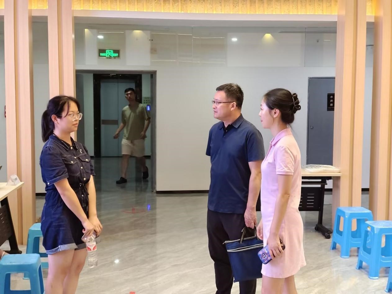 迎新活动前一日,学院党委书记夏俊,党委副书记、纪委书记张维薇来到迎新会场,确保迎新准备工作的完善。