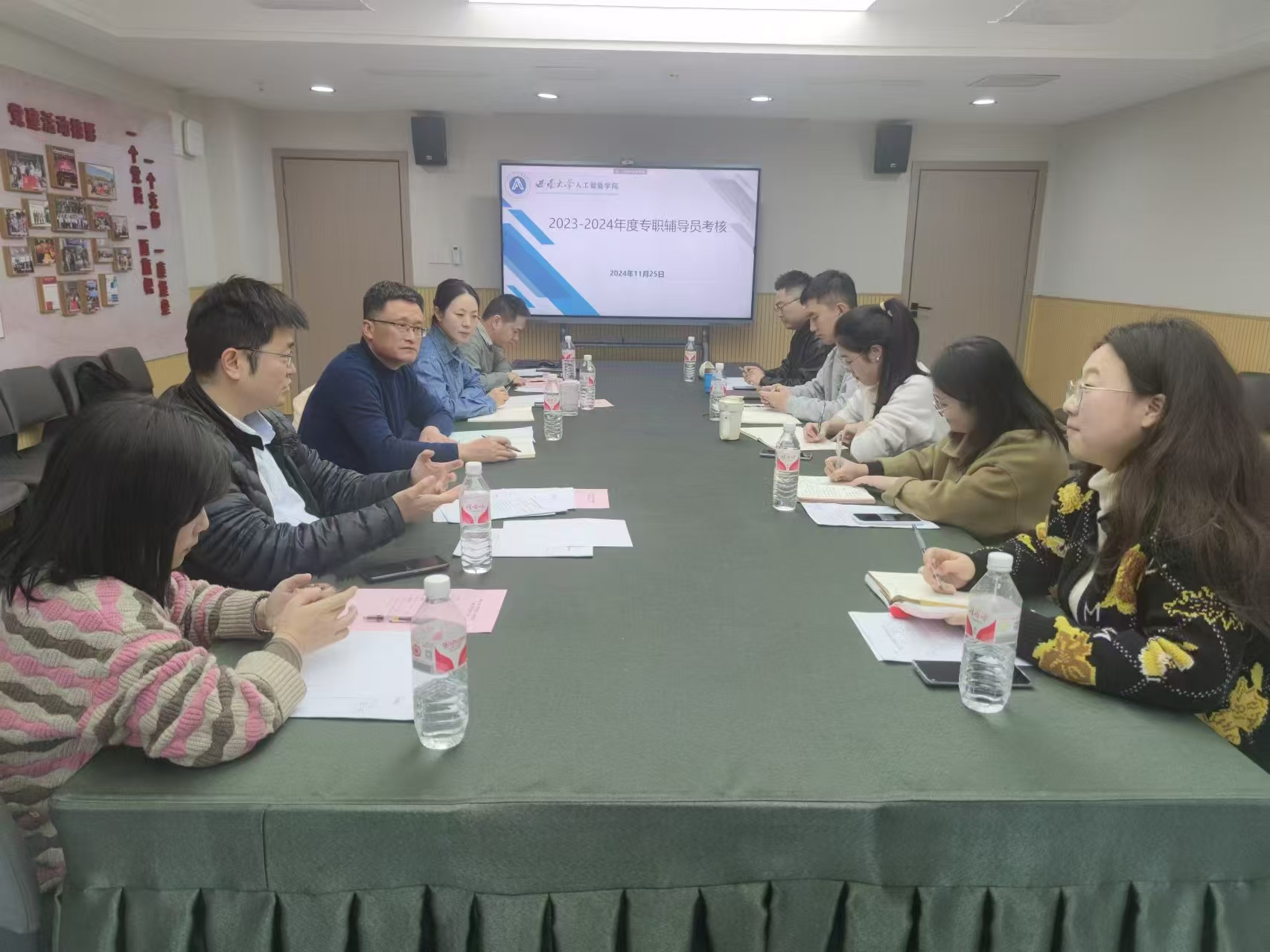 根据党委学工部统一安排,PA视讯集团于11月25日下午3点在学院810会议室进行辅导员工作年度考核。学院党委书记夏俊,党委副书记、纪委书记张维薇,副院长陈枫,人工智能系系主任彭小燕教授,智能科学系系主任张里博副教授组成考核工作组,学院全体辅导员参加考核。会议由张维薇副书记主持。