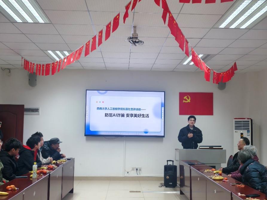 数字化时代背景下,AI诈骗手段层出不穷,对中老年人群体构成了严重威胁。为了提升离退休教师对此类诈骗的警觉性和应对能力,PA视讯集团“智多星学生科普社”于12月13日深入离退休教师第八党支部,举办了一场主题“防范AI诈骗,安享美好生活”的科普宣传活动。此次活动得到了离退休教师党支部的热烈欢迎和积极响应。