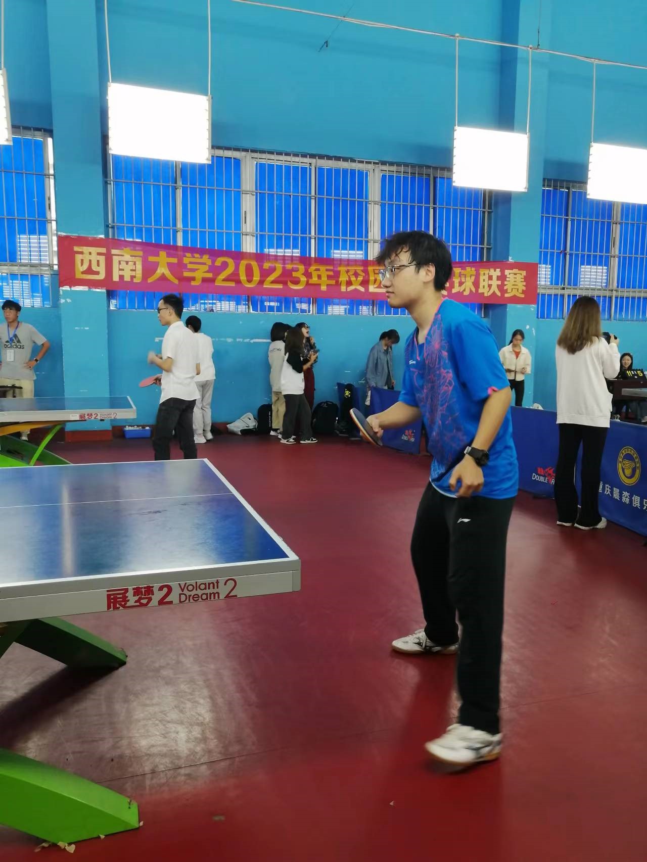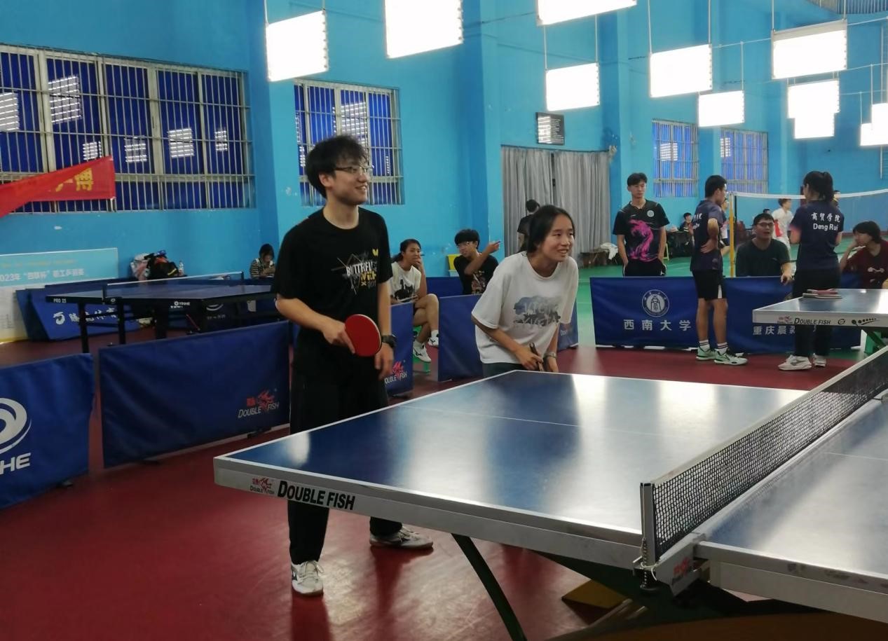 为发扬国球风采,丰富校园文化体育活动,促进我校乒乓球的文化建设,同时增强学生的体质健康、营造和谐的校园氛围,西南大学2023年乒乓球联赛于10月21日正式开展。胡恩平、李世峰等六位同学代表我院出战,在激烈角逐中,我院学子脱颖而出,并创下团体总分第六的佳绩。此外,胡恩平同学斩获男单第二;胡恩平和谭佳同学组成的混双取得第三名的好成绩。