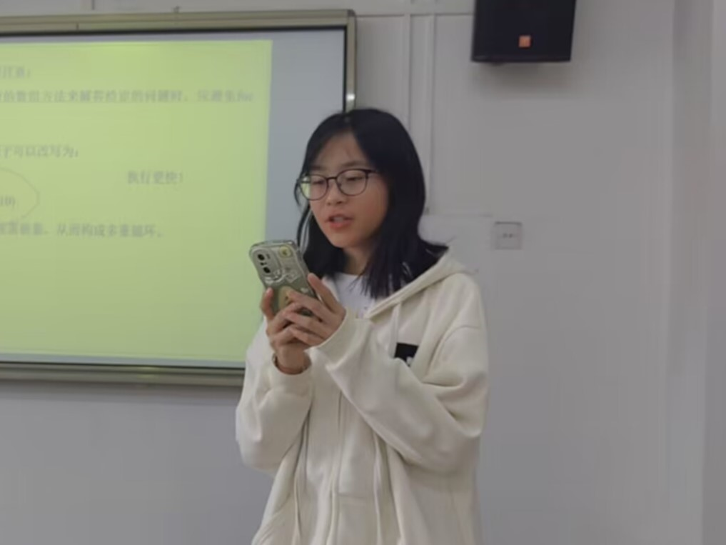 2023级智能科学与技术三班张龙慧带领同学们学习党的发展史和党的二十大精神。她介绍,党的二十大精神要求我们牢牢把握“坚持和加强党的全面领导”“坚持中国特色社会主义道路”“坚持以人民为中心的发展思想”“坚持深化改革开放”“坚持发扬斗争精神”的重大原则,埋头苦干、担当作为,不断推进社会主义现代化建设。并呼吁大家发扬党的二十大精神,为实现中华民族伟大复兴贡献力量。