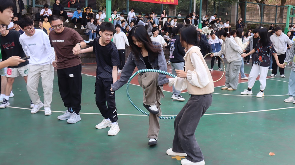 本次趣味运动会的开幕式由第五届团委学生会主席李庭婷主持。比赛以创新的趣味活动为主,既有团队协作的接力比赛,也有个人技巧的单项比赛,包括听歌识曲、智传呼啦圈、“心心相印”螃蟹赛跑、扔沙包、颠球接力、拔河共六个项目。