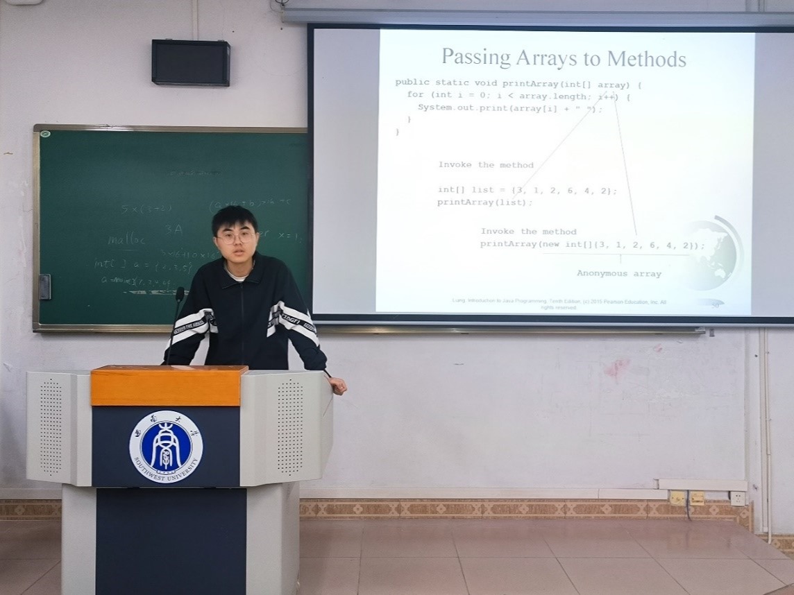 2023级维吾尔族同学阿卜杜巴日·艾山对中国共产党有着更为深厚的感情,他说是党的好政策让他华丽转身,也让自己的家乡走上了康庄大道。他以党的二十大精神为题,带着同学们回顾了近十年来中国共产党的历史性成就,包括打赢脱贫攻坚战和全面建成小康社会,强调了这是中国共产党和中国人民团结奋斗的历史性胜利。希望同学们也都能拼搏进取,在这最好的时代,与祖国一道,开创属于自己的未来,开创属于这一代人的未来。