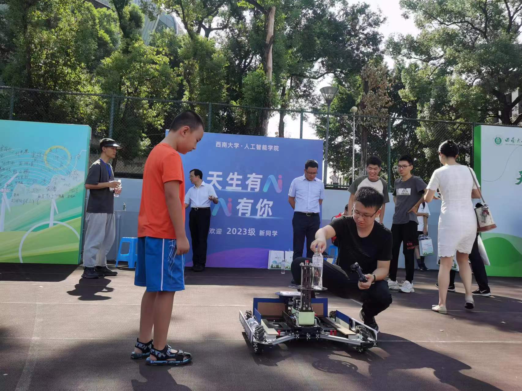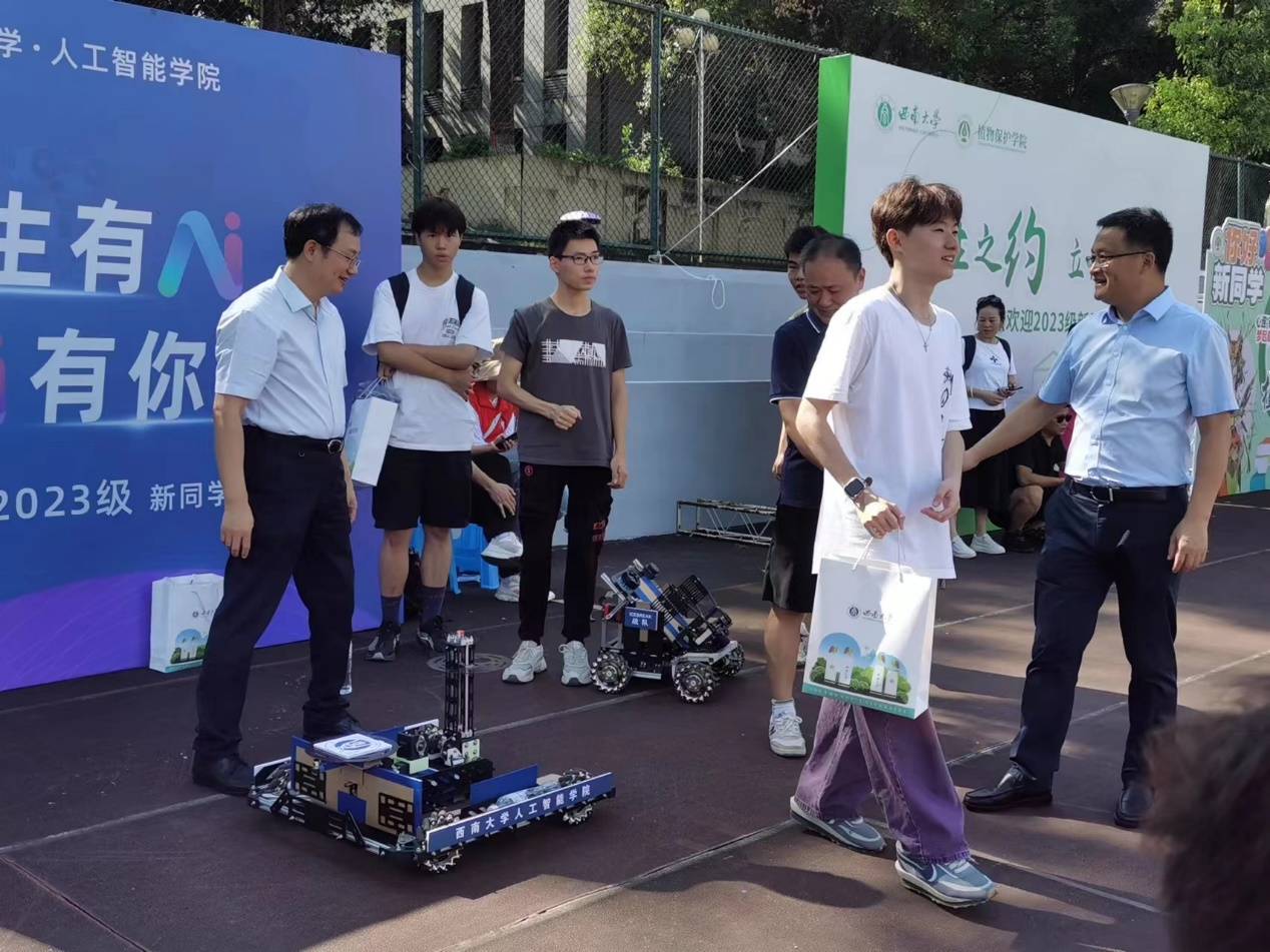 9月9日,西南大学2023级新生陆续到达学校报道,各学院积极开展迎新。今年PA视讯集团的迎新队伍可不一般,两台由学院本科生独立设计、编程和组装的“大象”运载投环机器人和“兔子”爬坡投环机器人成为迎新主角,两位“新朋友”吸引了诸多新生及家长并得到重庆日报的报道!