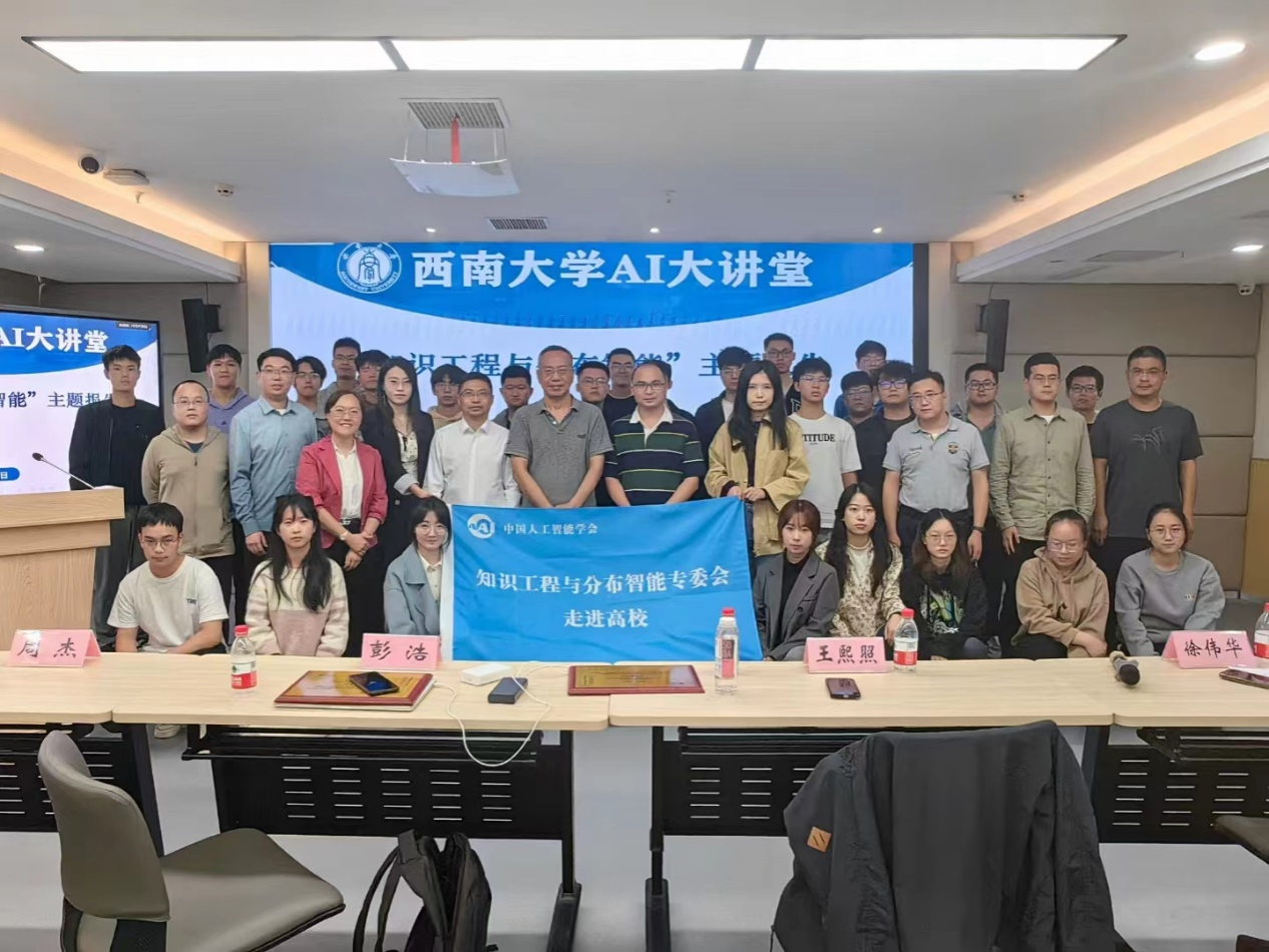 会议期间,组织开展了2023知识工程与分布智能前沿论坛暨知识工程与分布智能专委会走进西南大学系列活动。欧洲科学院院士、国家杰出青年基金获得者、哈尔滨工业大学高会军教授,国家杰出青年基金、优秀青年基金获得者、国防科技大学刘新旺教授,国家优秀青年基金获得者、北京航空航天大学彭浩教授和CAAI知识工程与分布智能专业委员会主任委员、IEEE Fellow、CAAI Fellow、国际期刊IJMLC主编、深圳大学王熙照教授作了特邀专题报告,并与学院师生进行深入交流。