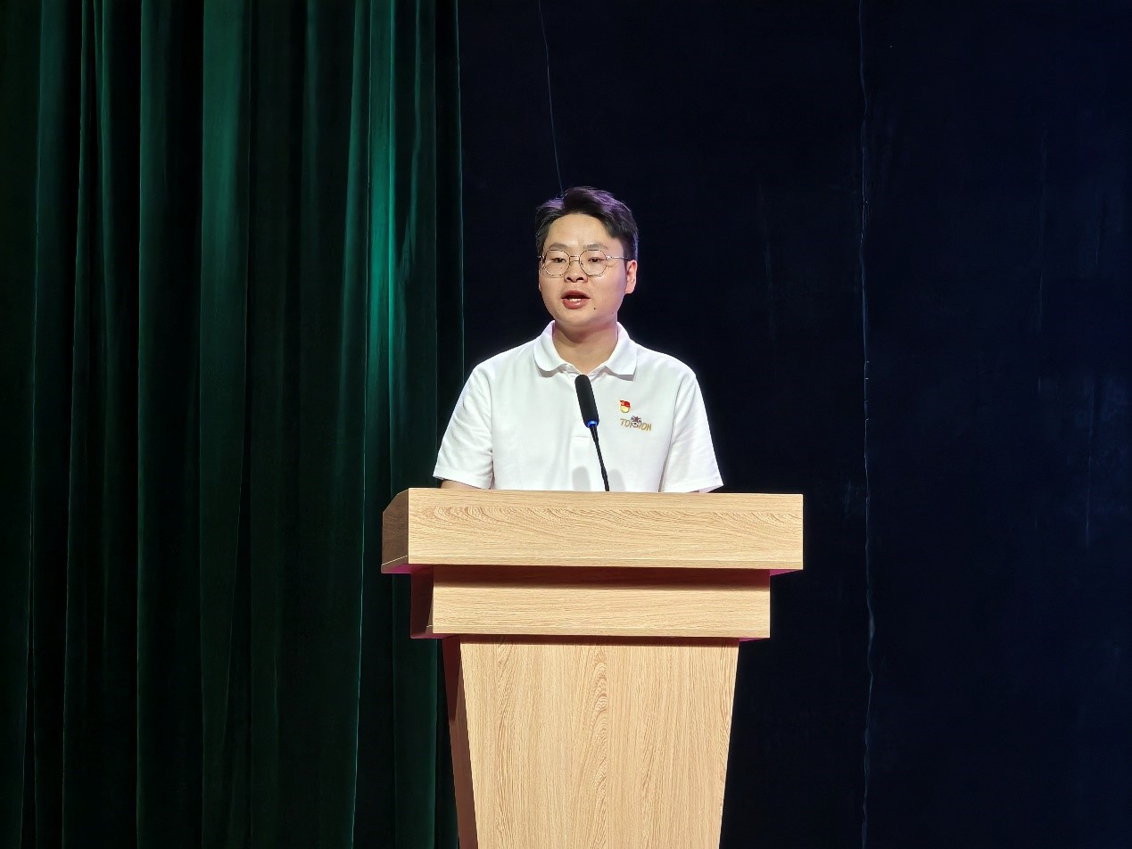 新生班主任袁锐老师作为教师代表发言。他谈到,人工智能正以前所未有之势发生变革,同学们要以发展前沿科技为抓手,着眼于中国科技前沿发展,为国家现代化进程做出贡献。为此,袁锐老师对同学们提出三点期盼:胸怀壮志,做有志AI人;脚踏实地,做实学AI人;不畏困难,勇攀高峰,成为一名无愧国家,无愧时代,无愧自己的新时代AI人!