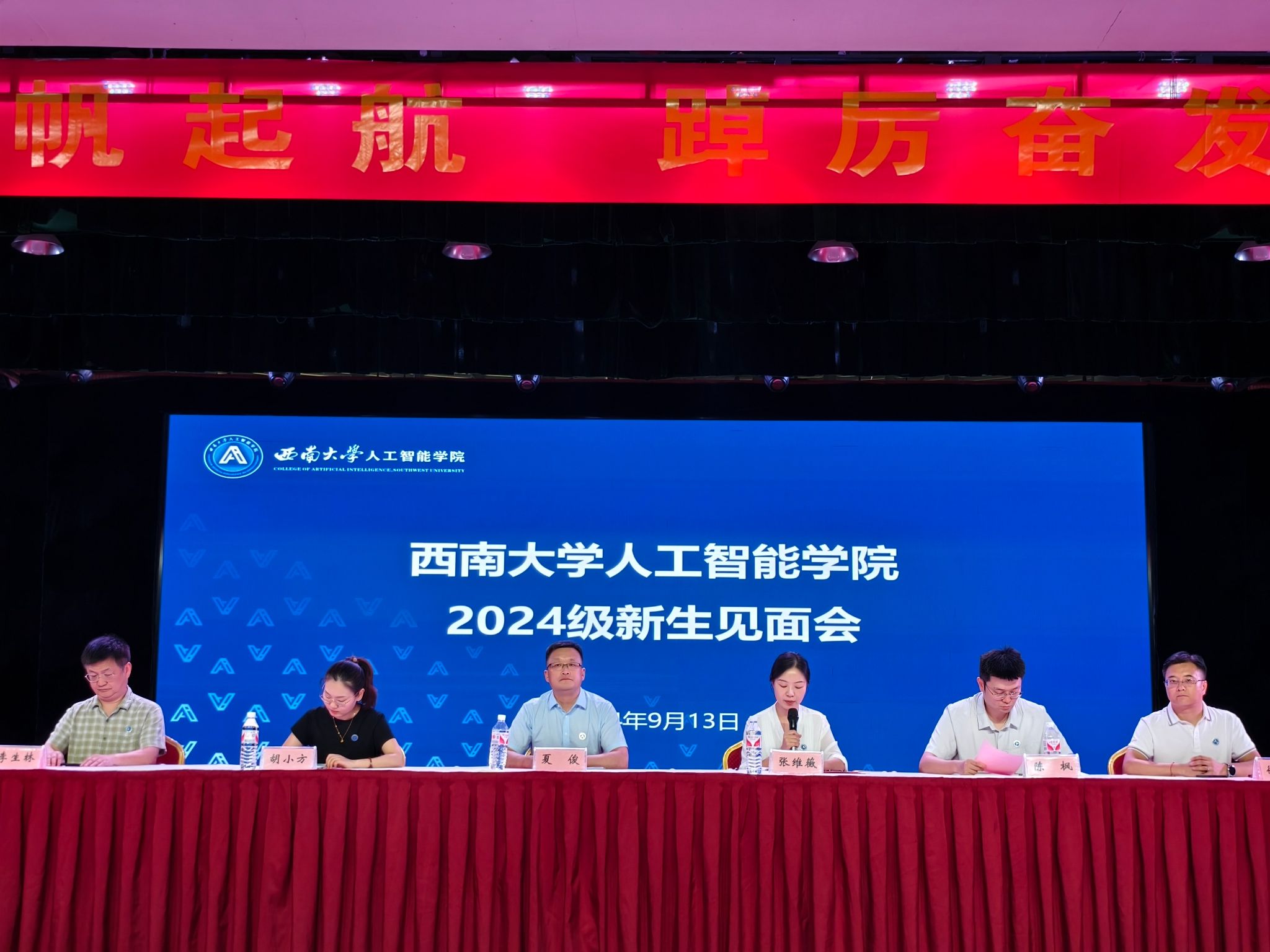 《西南大学校歌》的奏响为新生见面会画上了一个圆满的句号,希望2024级全体AI学子能够继承“含弘光大、继往开来”的优秀品质,不负青春使命,怀揣远大理想,做新时代、新征程的领航人,为未来谱写壮丽篇章!