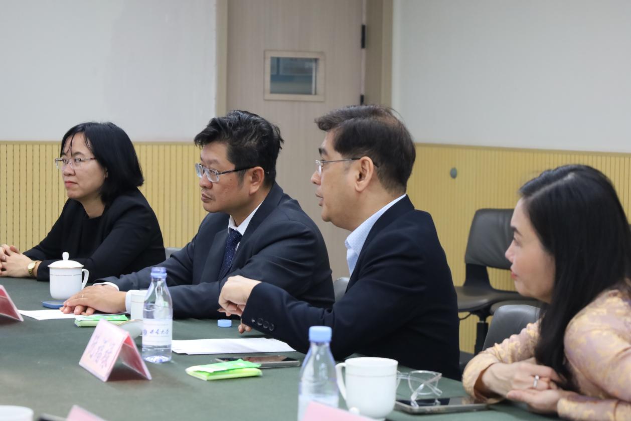 胡志明市师范大学代表团成员认真聆听介绍。双方在人工智能科研教育、学生联合培养、师资培训等方面达成多项共识。代表团对学院的学术实力表示高度赞赏。高英俊副校长表示:“很高兴能与PA视讯集团进行深度探讨,期待后续进一步的合作。”